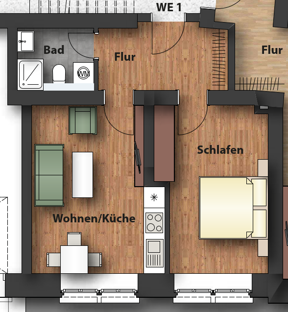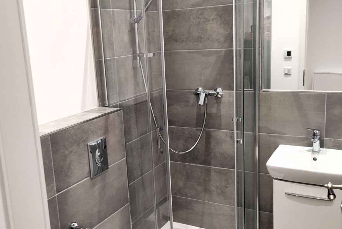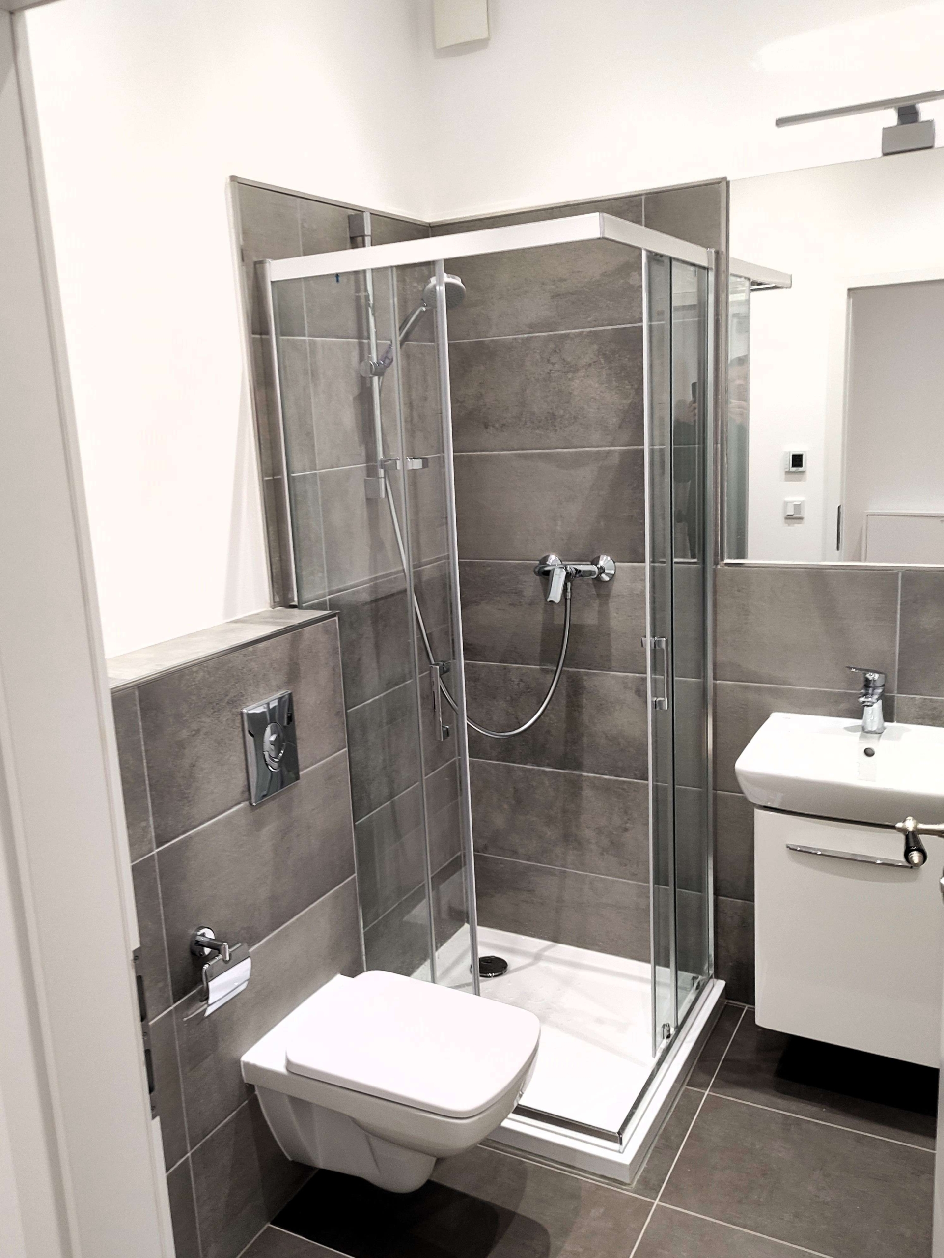 – innenliegendes Badezimmer mit Dusche & Waschmaschinenanschluss