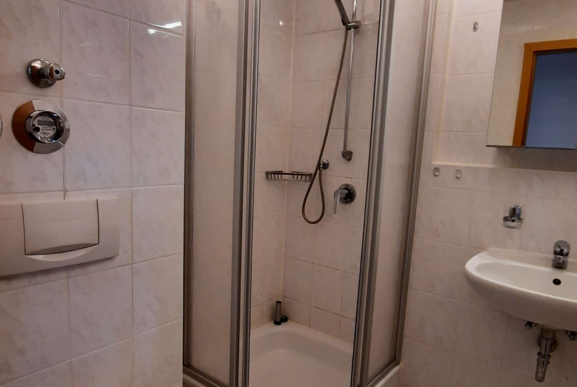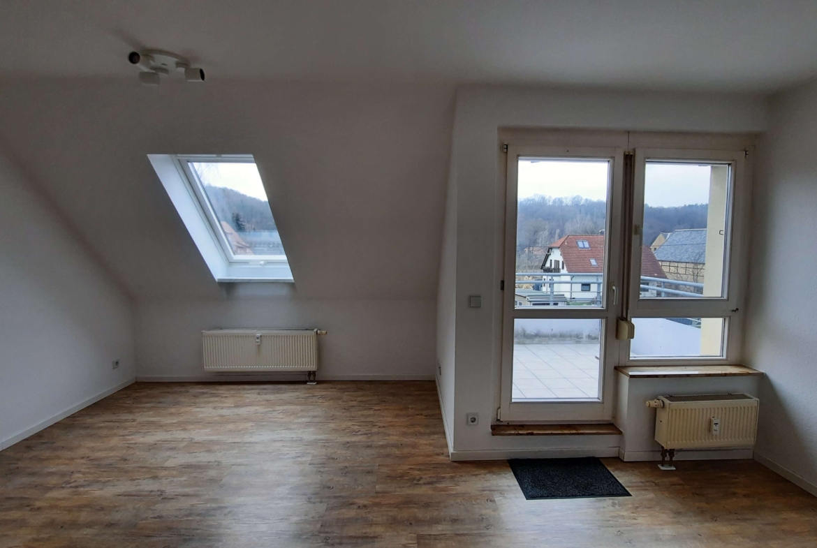 Die charmante 1-Raum Wohnung befindet sich in der Wohnanlage Am Dorfanger in Niederlungwitz/Glauchau. Der um 1996/1997 errichtete Gebäudekomplex besteht aus 64 Wohn- und 2 Gewerbeeinheiten. Über den kleinen Flur gelangen Sie gleich linker Hand in das innenliegende Duschbad, welches ausgestattet ist mit Spiegelschrank, Handtuchhalter, Seifenhalterung, Zahnputzbecherhalter, Toilettenpapierhalter und eine Ablagefläche in der Dusche. Weiter gelangen Sie in den Wohn- und Schlafbereich. Von hier aus ist die Küche und der geräumige Balkon begehbar. Die Küche ist mit einer modernen Einbauküche ausgestattet (Kühlschrank und E-Herd, Hängeschrank). Durch die vorhandenen Dachschrägen wird der Wohnung ein zusätzlicher Charme verliehen. Praktisch ist auch der bereits installierte Sonnen-und Wärmeschutz an den Velux-Dachfenstern. Die anderen Räume lassen sich durch die vorhandenen Außenjalousien abdunkeln. Zu der Wohnung kann ein Stellplatz angemietet werden.