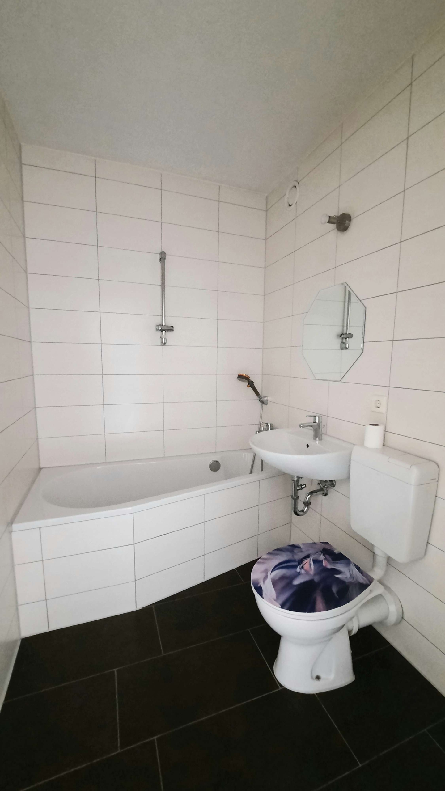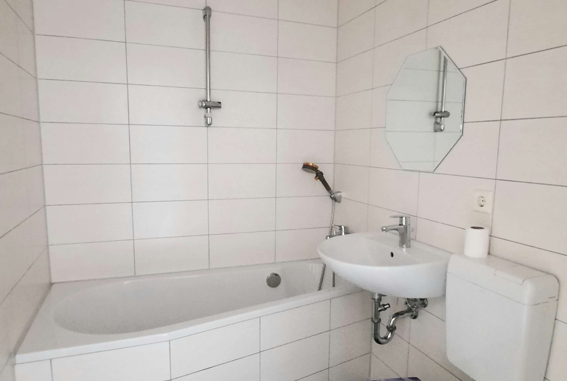 – Bad innenliegend hochwertig gefliest mit Badewanne und Fußbodenheizung